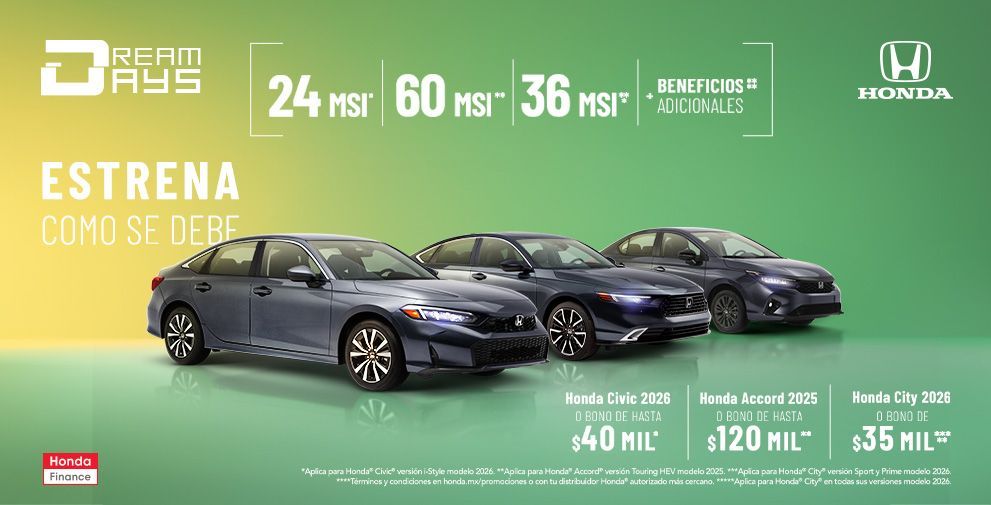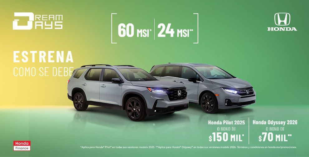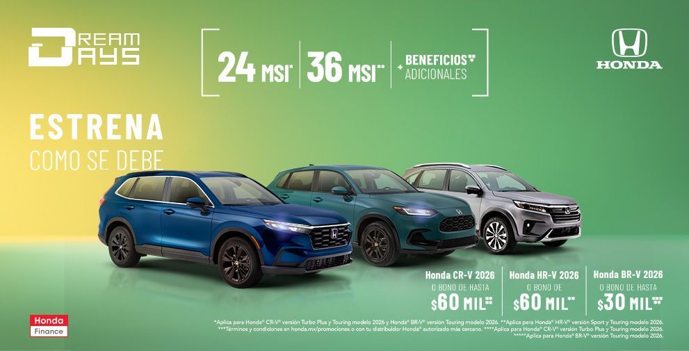 Vigencia del 01 al 31 de agosto de 2024 o hasta agotar existencia lo que suceda primero.Crédito exclusivo con Honda Finance®. Aplican restricciones y está sujeto a aprobación de crédito. No incluye accesorios del vehículo. No aplica con otras promociones. Para más información acerca de requisitos y opciones de financiamiento visite su Distribuidor autorizado Honda® más cercano.